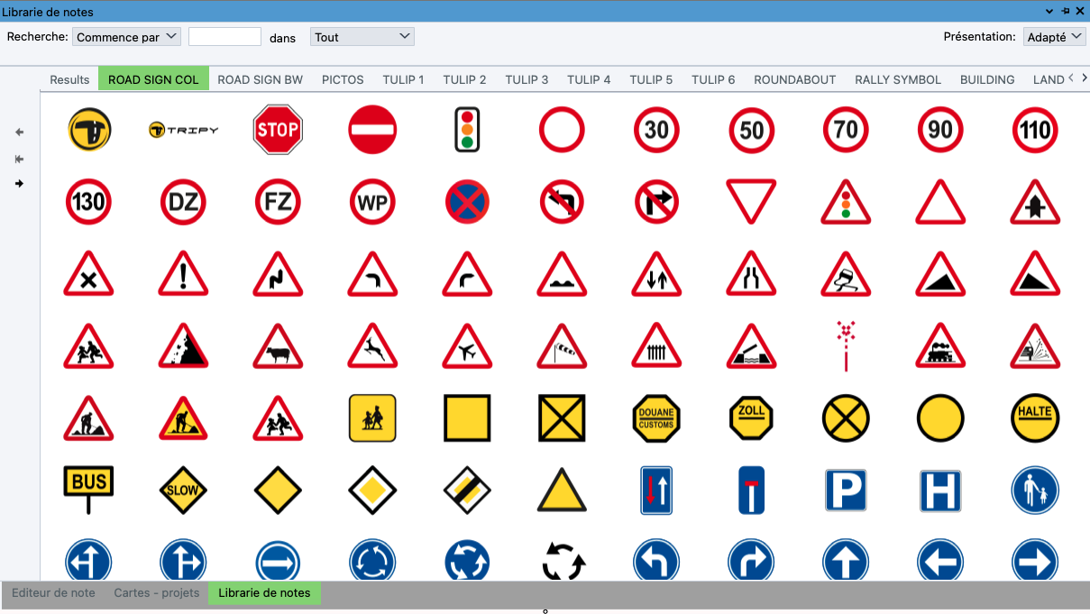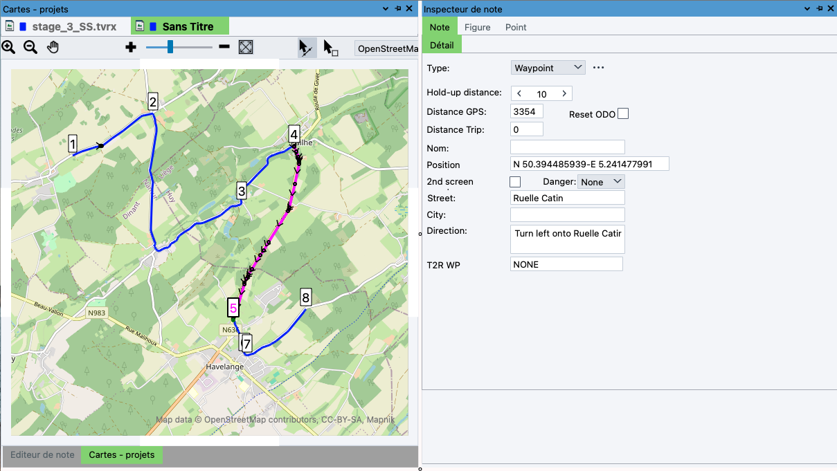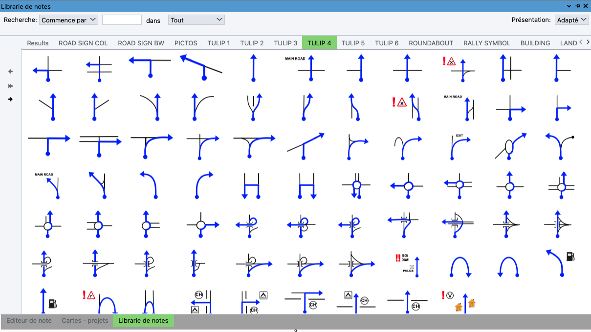 RiverNotes 2 genereert automatisch notities met pictogrammen in de vorm van een bol en pijl voor elk kruispunt. Deze notities kunnen worden gepersonaliseerd, afgedrukt en geëxporteerd naar de formaten GPX, KML, TRB, TVR, TVRX, OPENRALLY en CSV.