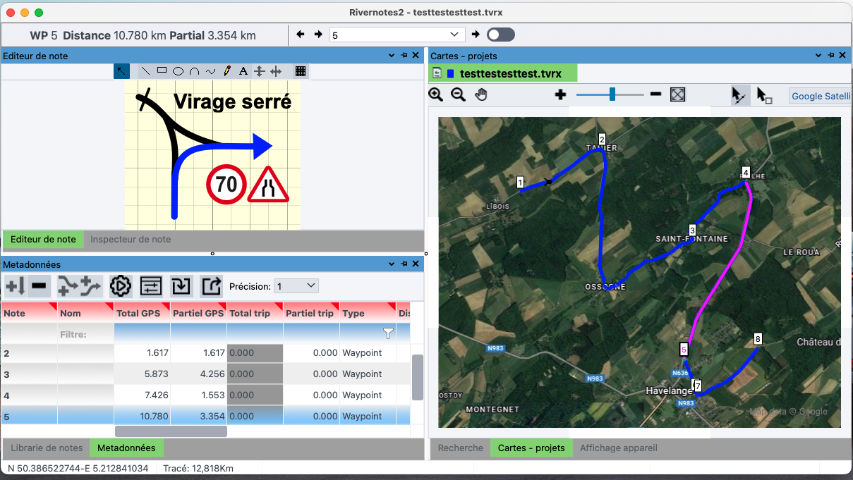 RiverNotes 2 synchroniseert alle onderdelen van een roadbook: kaarten, aantekeningen, routes, waypoints, notities en metadata.
